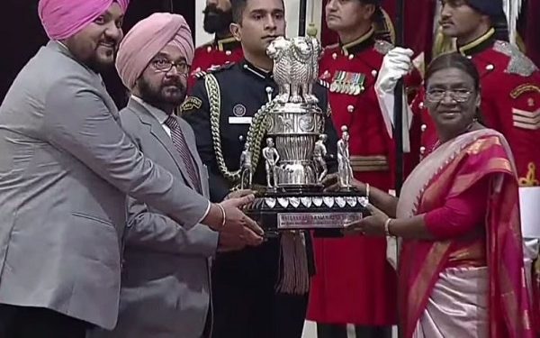 New Delhi,09 Jan,(Punjab Today News Ca):- ਖੇਡਾਂ ਵਿੱਚ ਇੱਕ ਵਾਰ ਫਿਰ ਤੋਂ ਪੰਜਾਬ ਦੀ ਯੂਨੀਵਰਸਿਟੀ ਨੇ ਝੰਡੀ ਗੱਡ ਦਿੱਤੀ ਹੈ,ਗੁਰੂ ਨਾਨਕ ਦੇਵ ਯੂਨੀਵਰਸਿਟੀ (Guru Nanak Dev University) ਨੇ ਖੇਡ ਦੇ ਖੇਤਰ ਵਿੱਚ ਵੱਕਾਰੀ ਟਰਾਫੀ ਮੌਲਾਨਾ ਅਬੁਲ ਕਲਾਮ ਆਜ਼ਾਦ ਟਰਾਫ਼ੀ (MAKA Trophy) ਹਾਸਲ ਕਰ ਲਈ ਹੈ,ਯੂਨੀਵਰਸਿਟੀ ਦੇ ਉਪਕੁਲਪਤੀ ਡਾ. ਜਸਪਾਲ ਸਿੰਘ ਸੰਧੂ ਅਤੇ ਡਾ.ਕਮਲਮੰਦੀ ਨੇ ਰਾਸ਼ਟਰਪਤੀ ਦਰੋਪਦੀ ਮੁਰਮੂ ਪਾਸੋਂ ਇਹ ਟਰਾਫੀ ਹਾਸਲ ਕੀਤੀ।